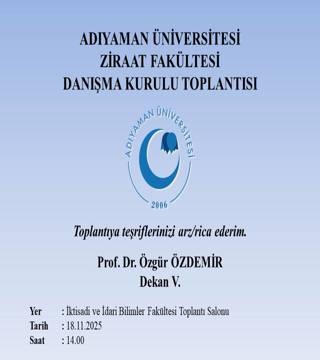 Danışma Kurulu Toplantısı18Kasım2025 14:00Adıyaman Üniversitesi İktisadi ve İdari Bilimler Fakültesi Toplantı Salonu